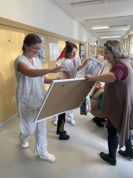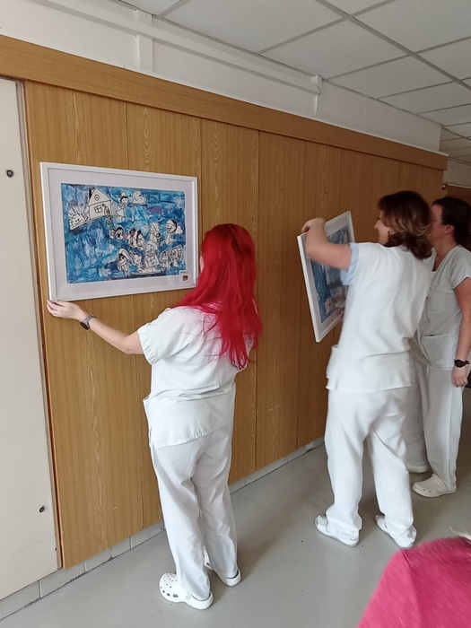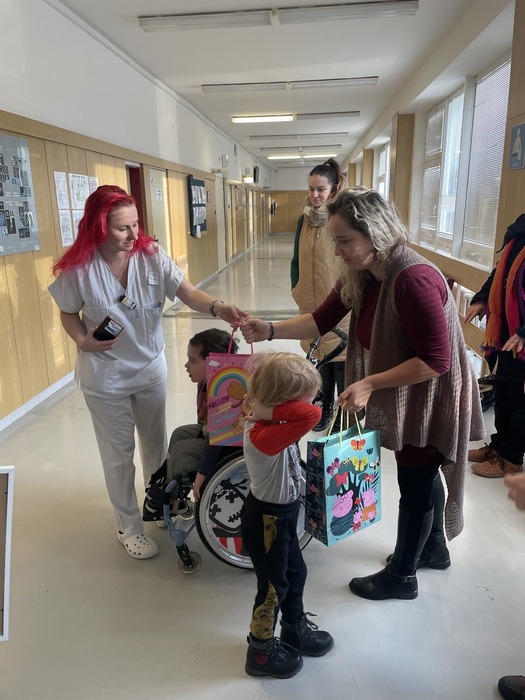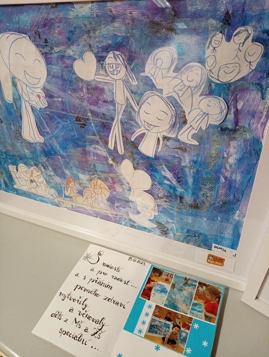 Děti a učitelé MŠ speciální připravili v rámci třídního vánočního projektu ,,Dobrý skutek" dva obrazy k výzdobě RDG oddělení nemocnice v Novém Jičíně. Děti nejprve technikou roztírání barev válečkem nabarvily abstraktní podklad, do kterého pak byla zakomponována jednotlivá dílka nakreslená Deniskou Jurčágovou, žákyní základní školy speciální. Díky této tvořivé spolupráci vznikly dva velmi originální a působivé obrázky, které měly při předávání v nemocnici velký úspěch. Z obrazů i fotopřáníčka z jejich tvorby byli zdravotníci nadšeni a těší se na budoucí spolupráci a další naše obrázky. Všichni jsme si společně akci užili a bylo moc milé, že i naše děti odcházely domů s dárečkem, který si pro ně zdravotníci připravili.