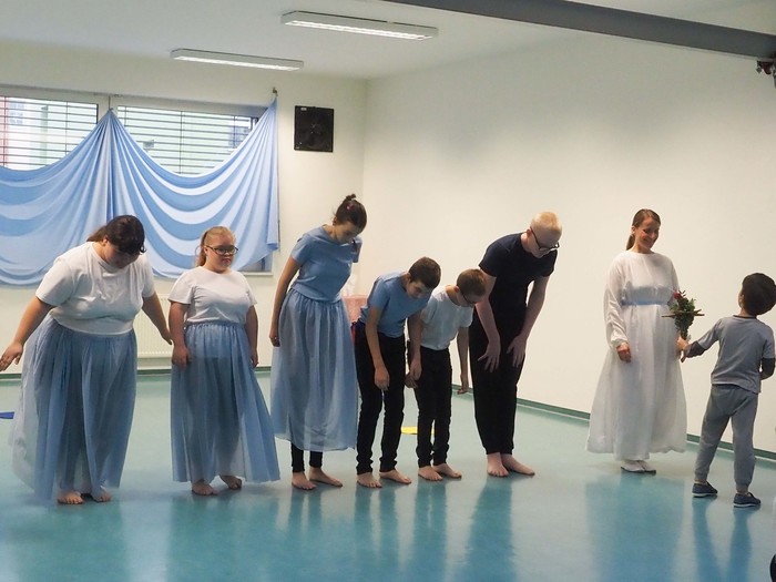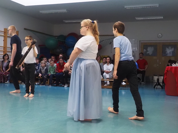 Starší žáci naší školy nadchli rodiče, pedagogy a spolužáky krásným eurytmickým představením. S velkým soustředěním a zároveň ladností předvedli pohybově-umělecké ztvárnění básní a hudby, kterým se věnovali v prvním pololetí. K vidění byly variace prostorových forem kruhu a čtverce, dále spirála, lemniskáta a pentagram. Velkou vytrvalost ukázali žáci při nácviku básně Král a vosa od Vítězslava Nezvala. Báseň má osm slok a zapamatovat si celou choreografii nebylo vůbec snadné. Představení se žákům moc povedlo a diváci je ocenili bouřlivým potleskem.