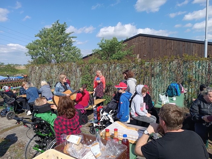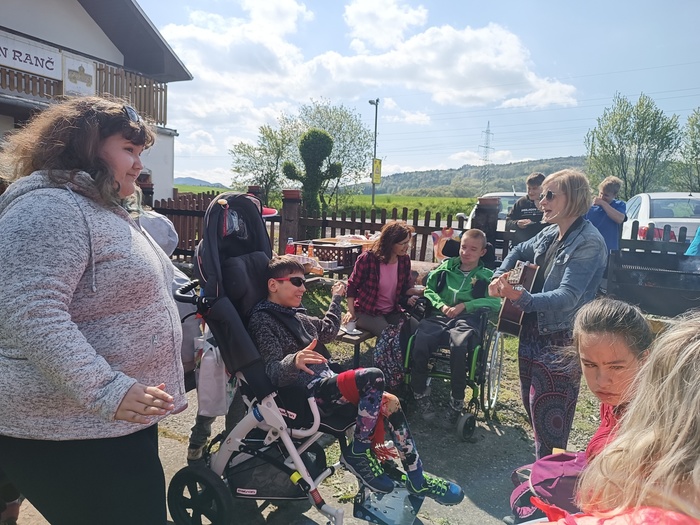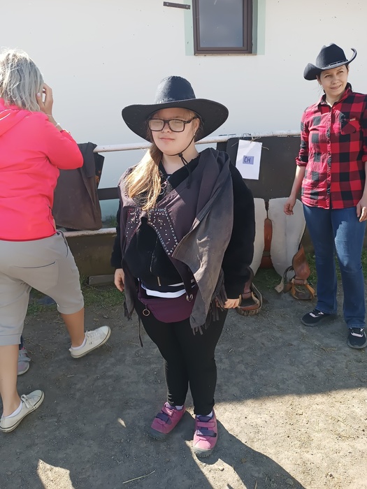 My jsme do zpestření programu přispěli hrou na kytaru, zpěvem a tancem a společně s kamarády z „Motýlka“ si užili krásný den na ranči.