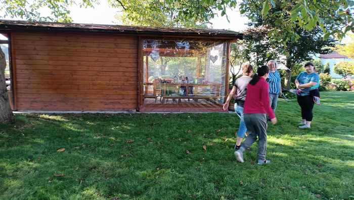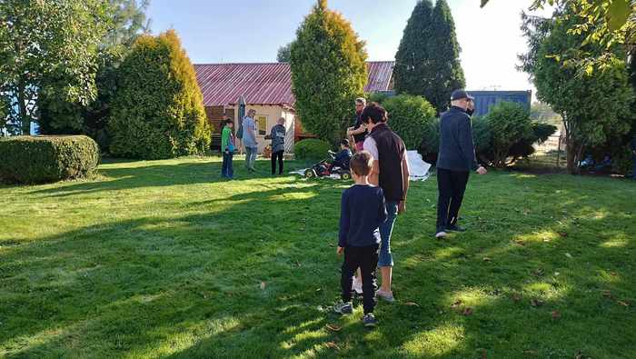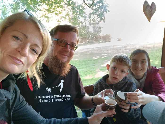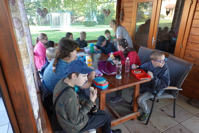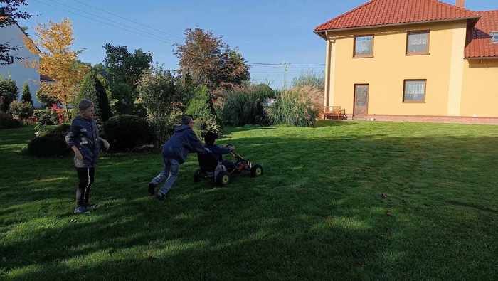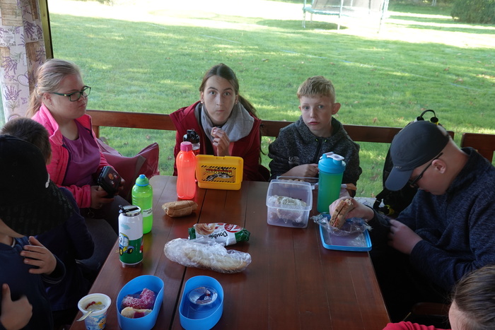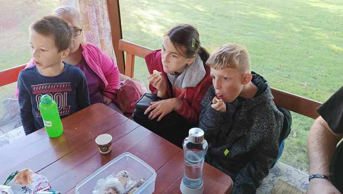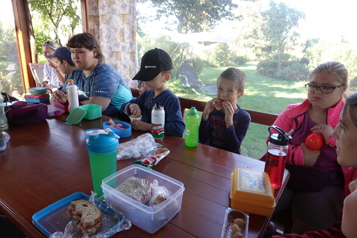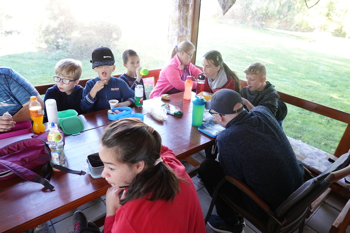 Jako bonus krásného dne, nám majitelé přichystali bohaté občerstvení. Návštěvu jsme završili procházkou v blízkém okolí farmy směrem ke splavu řeky Odry a prohlídkou domácího skotu u sousedů.