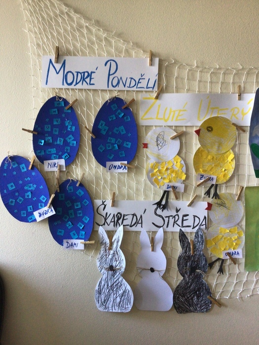 Pondělí bylo podle tradice modré, slavili jsme v modré barvě také Světový den porozumění autismu. Úterý bylo podle tradice žluté a škaredou středu jsme slavili v černé barvě. Všechny dny jsme tvořili velikonoční výrobky a povídali si o tradicích, ve středu jsme navštívili také Novojičínský velikonoční jarmark na Masarykově náměstí.